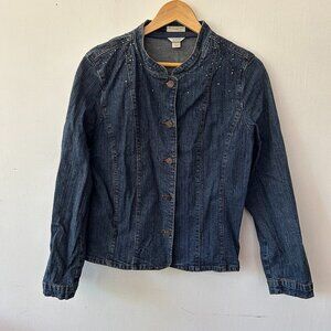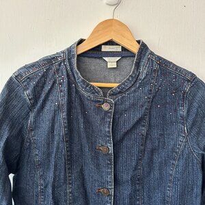 Christopher & Banks Denim Jacket Womens XL Stretch Rhinestones Button Front