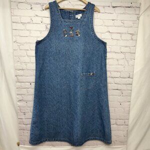 Christopher & Banks Denim Jumper Dress Modest Teacher Embroidered Plus Sz 18