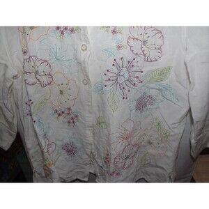 Christopher & Banks Embroidered White Linen Button Up Shirt Womens XL