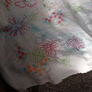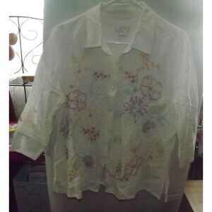 Christopher & Banks Embroidered White Linen Blend Button Up Shirt Women’s XL