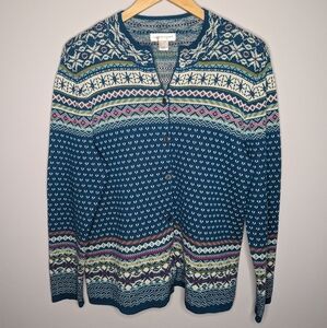 Christopher&Banks Fair Isle Cardigan Sweater Size Large