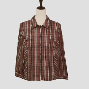 Christopher & Banks Fall Colored Plaid Stretch Button Up Jacket Size XL