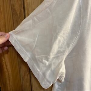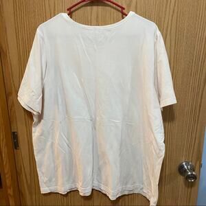 Women’s plus size 2X Christopher & Banks Find Your Fit short sleeve tee shirt. Color is a very, very light peach. It’s not quite white or cream, but the color is very subtle. Everyday fit. Cotton and spandex blend. Shirt is in good used condition with no flaws or stains other than some wash wear. Please see close-up pictures for condition details.