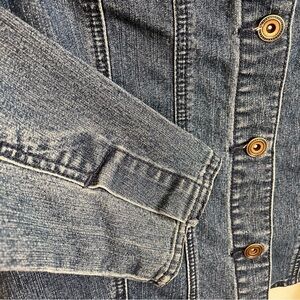 This is a great jean jacket from Christopher & Banks. It is a medium wash denim that is in excellent used condition. It has almost a shirt look and feel.
