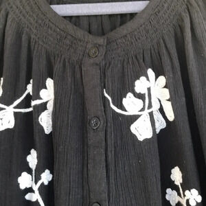Christopher & Banks Floral Peasant Black Top
