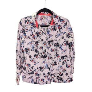Christopher & Banks Floral Print Button Down Long Sleeve Size Petite Medium