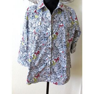 Christopher & Banks Floral and Butterfly Button Down Large NWOT