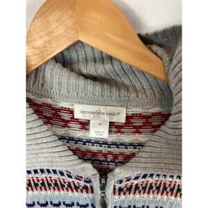 Christopher & Banks, cardigan, sweater, knit, full zip, patterned, grey, blue, red, medium