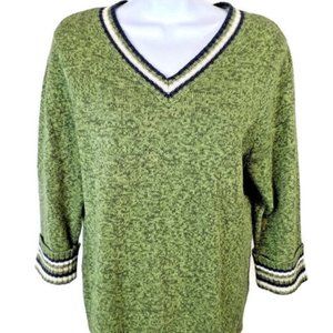 Christopher & Banks Green Heathered V-Neck 3/4 Sleeve Pullover Sweater Womens Large Preppy