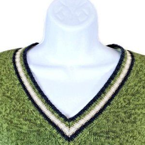 Christopher & Banks Green Heathered V-Neck 3/4 Sleeve Sweater Womens L Preppy