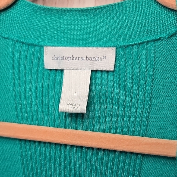 Christopher & Banks Green Open Front Tie Back Cardigan Size Large