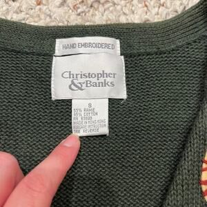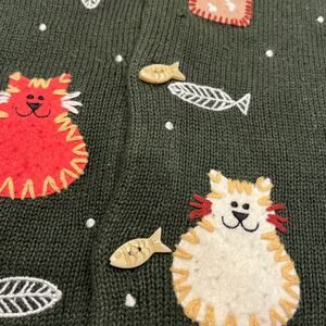 Christopher & Banks Hand Embroidered Cat Vest Sz S Vintage Cotton Fish Novelty