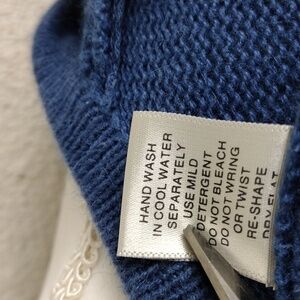 Christopher & Banks Hand Embroidered Vintage Women's Poinsettia Neckline Embroidered Detail Blue Red Scoop Neckline Long Sleeve Seven Button Front Waist Length Cardigan Holiday Sweater. 55% Ramie, 45% Cotton. Light Shoulder Pads. White Seam Detail. Next To Last Button Missing. Measurements approx. Flat Lay. Pit to Pit: 18, Sleeves: 26.5, Length: 24". Size Medium Color May Vary Due To Lighting.