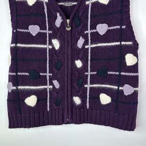 Christopher & Banks Hand Embroidered Purple Heart Zip Sweater Vest Large