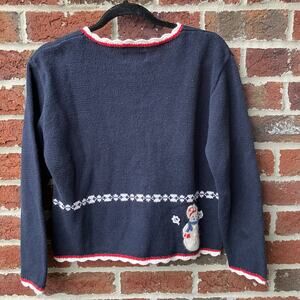 Christopher & Banks Vintage Hand Knitted Snowman Cardigan Sweater Size Small