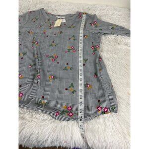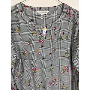 Christopher & Banks Houndstooth Floral Popover Blouse NEW Medium