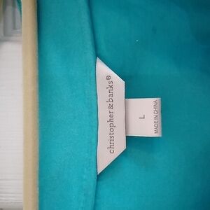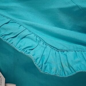 Vibrant turquoise cropped jacket with ruffled edges. Perfect for layering. 3/4 sleeves