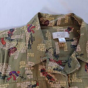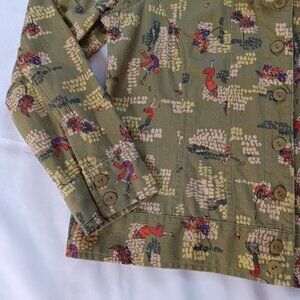 Christopher & Banks Jacket Novelty Print Unique Fall Print Green Button Size MP