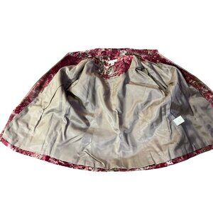 Beautiful Christopher & Banks corduroy jacket in a rich red multi-color pattern with embroidered details. This zip-front jacket features a soft cotton shell and acetate lining, perfect for fall or winter layered looks. Clean, gently used condition with no stains or snags.