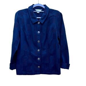 Christopher & Banks Jacket Women's Size MP Navy Button-Up Pattern Blazer