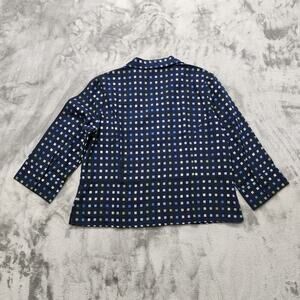 Christopher & Banks Jacket Womens XL Blue Green Check Plaid Cotton 3/4 Sleeve