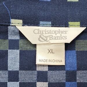 Christopher & Banks Jacket Womens XL Blue Green Check Plaid Cotton 3/4 Sleeve Button Front Casual Teacher Preppy Office Career Lightweight