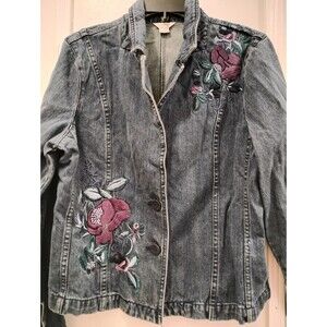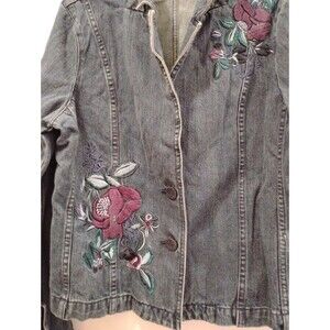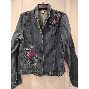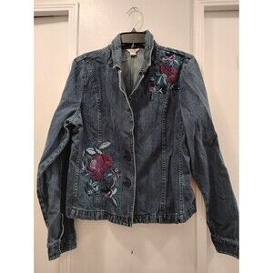Christopher & Banks Jean Jacket Floral Embroidered SZ Lrg Bloomcore Boho Cotton