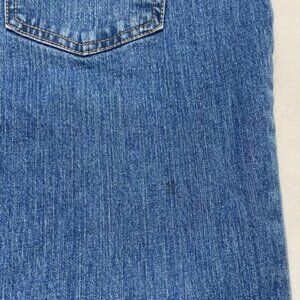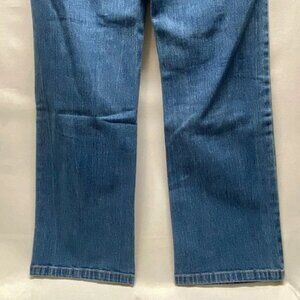 These ladies jeans are in good pre-owned condition with no holes or stains and minimal washwear. Please see all photos as this is the exact garment you will receive. Measurements taken with item laying flat- waist is 15.5", length from high point of waist to bottom hem is 39", inseam is 30". Cotton blended fabric, machine wash cold.