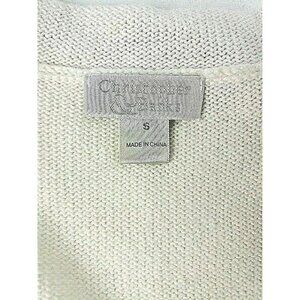Christopher Banks Knit Cardigan Sweater Sz Small Crochet Trim Sleeve Off White