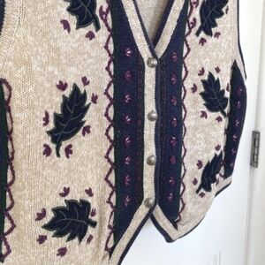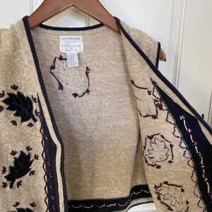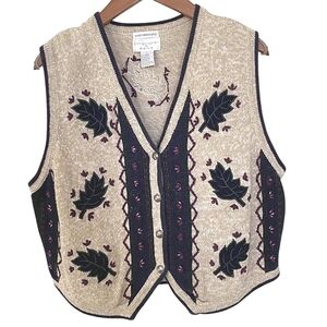 Christopher & Banks Knit Hand Embroidered Fall Leaves Vest - sz Large