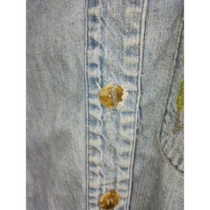 Christopher & Banks L Button Up Denim School Bus Embroidered Jean Jacket Shirt