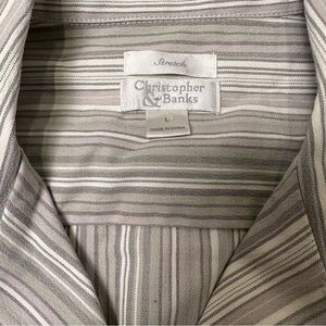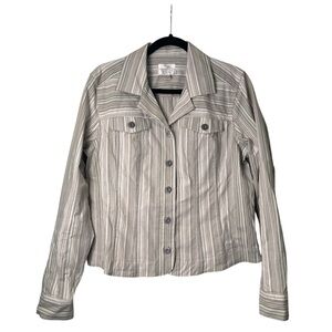 Christopher & Banks L Stretch Beige, Green & Brown Striped Jacket