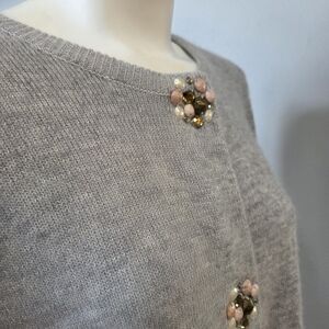 Christopher & Banks Light Gray Cardigan with Floral Buttons