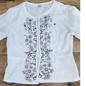 Christopher & Banks Light weight Embroidered Tie Front Cover up Blouse Size Smal