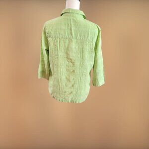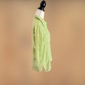 Christopher & Banks Lime Green Button Down Casual Blouse 3/4 Sleeve in Size M
