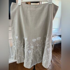 Elegant linen beige skirt with white floral embroidery. Perfect for any occasion. Fully lined . Back zipper