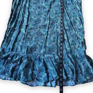Christopher & Banks Long Skirt With Flounce Size 10 Blue Green Fern Side Zip.