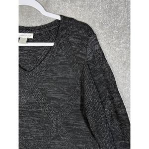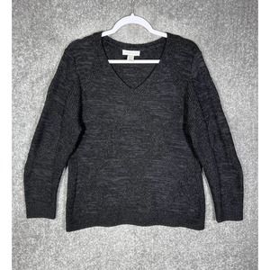 Christopher & Banks Long Sleeve V-Neck Knit Sweater Womens Size Large Black Gray