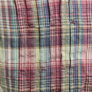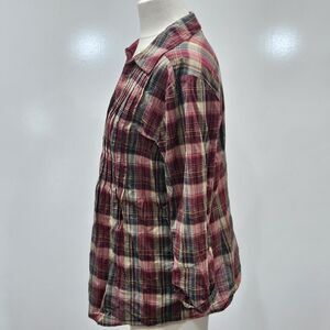 Elevate your wardrobe with this charming Christopher Banks button-down shirt. Featuring a delightful plaid pattern with subtle metallic fibers, this top is perfect for adding a touch of sparkle to your holiday, rustic, or cottagecore outfits. Its pleated and pin-tucked details add a sophisticated touch. Pair it with your favorite jeans for a cute western look or dress it up for a festive Christmas gathering!