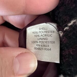 Christopher & Banks Merlot Black Red Plaid Curly/Tweed Zipped Vest