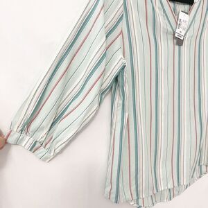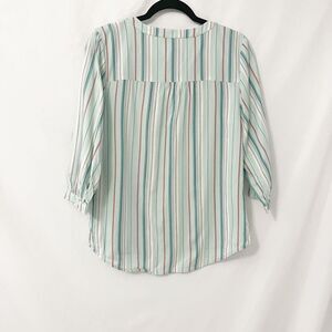 🟢Christopher & Banks Mint Green Multicolor Striped 3/4 Sleeve V Neck Blouse SP