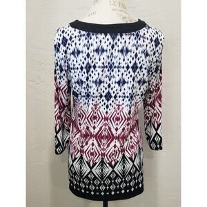 Christopher & Banks Multi Color Design 3/4 Sleeve V Neck Tunic Blouse Top Shirt