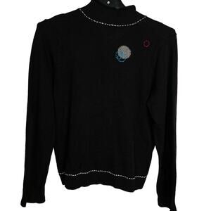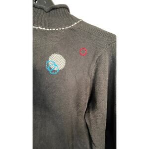 Add a pop of color to your wardrobe with this lovely Christopher & Banks pullover sweater! This previously loved sweater features a unique black base adorned with vibrant, colorful circle designs throughout. It's perfect for adding a touch of fun to any outfit!