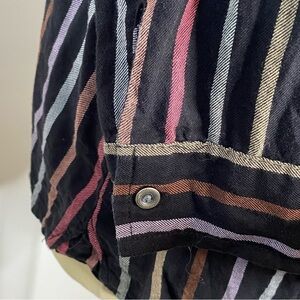Christopher & Banks Multicolor Vertical Striped Button Up Shirt. Black button up dress shirt with multicolor vertical stripes and crop sleeves. Excellent worn once.