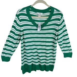 Christopher & Banks NWT Green White Striped Lightweight 3/4 Sleeve Sweater PXL