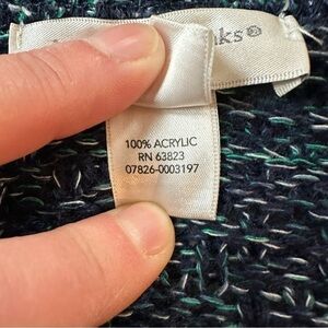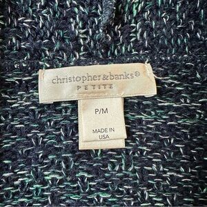 This beautifully knitted navy and teal cardigan from Christopher & Banks is super soft. It has a lovely basket weave knit. In great condition. No stains, holes or pulls. 21” pit to pit, 22” length, 24” sleeves.