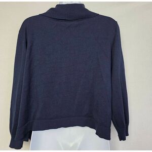Christopher & Banks women’s open front cardigan in navy blue, size XL. Lightweight knit blend of rayon and polyester with ribbed collar and hem. Easy layering piece for work, casual, or travel wear.
