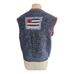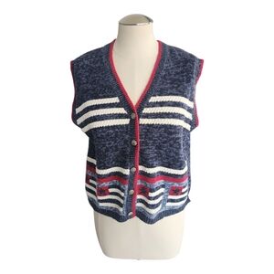 Christopher & Banks Patriotic Red White Blue Stripes Button Cardigan Vest L