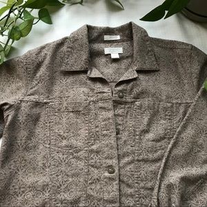 Christopher & Banks Patterned Jacket. This rustic jacket feels sort of like denim, and has a beautiful pattern and detailed buttons. Size Small.