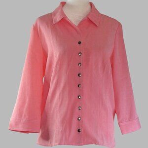 Christopher & Banks Pink Checkered Long Sleeve Snap-Up Blouse Size M (C984)